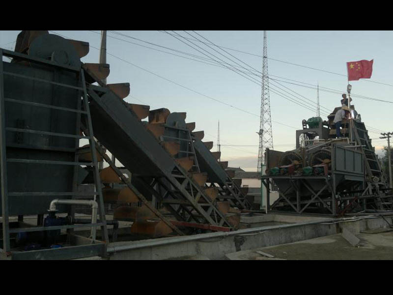 海沙淡化設(shè)備是一種連續(xù)淡化的流水線設(shè)備,其工作流程如下:海沙通過皮帶輸送機(jī)輸入到篩砂機(jī),通過篩砂機(jī)篩去貝殼和鵝卵石,經(jīng)滑道滑入清洗池,經(jīng)二級清洗后,經(jīng)皮帶輸送機(jī)輸入到成品堆場。